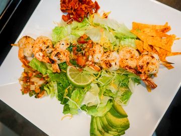BLACKENED GRILLED SHRIMP, BACON, CHEESE, PICO, TORTILLA STRIPS, AVOCADO & SALAD MIX SERVED WITH AVOCADO LIME RANCH