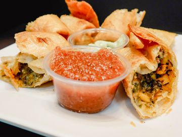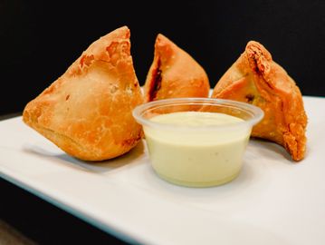 PASTRIES FILLED WITH SPICED POTATOES & PEAS WITH GREEN SAUCE