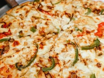 GRILLED CHICKEN, GARLIC PARMESAN, ALFREDO SAUCE, ONIONS, BELL PEPPERS
