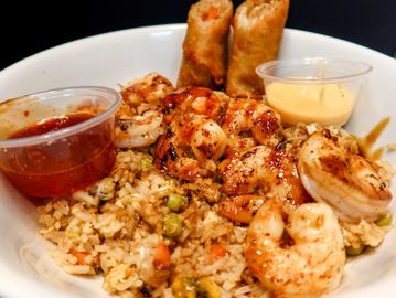 PAN-TOSSED RICE WITH CHOICE OF MEAT, EGG, ONIONS, PEAS & CARROTS SERVED WITH A PORK EGG ROLL & THAI CHILI SAUCE