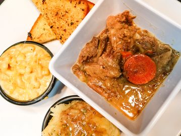 ROASTED CHUCK ROAST IN A FLAVORFUL BEEF BROTH, SAUTÉED CARROTS, ONIONS & POTATOES