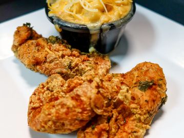 SECRET MENU- FRIED CHICKEN, MAC AND CHEESE, LOUISIANA HOT SAUCE, BRIOCHE BUN