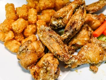 INCLUDED | SEASONED FRIES, ONION RINGS, TATER TOTS, FRIED OKRA, BOTTLECAP JALAPEÑOS, BUTTON FRY MUSHROOMS, FRIED PICKLES, BONELESS WINGS